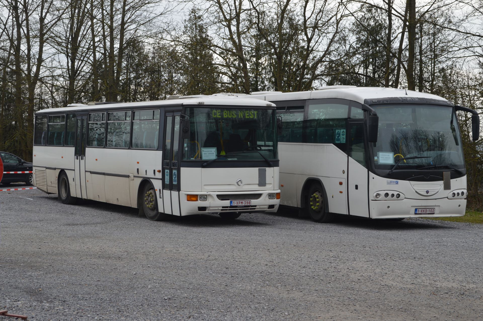 A cette fin, l’établissement dispose de 2 bus d'environ 50 places et de 2 minibus de 8 places : photos des véhicules (cars et camionnettes)